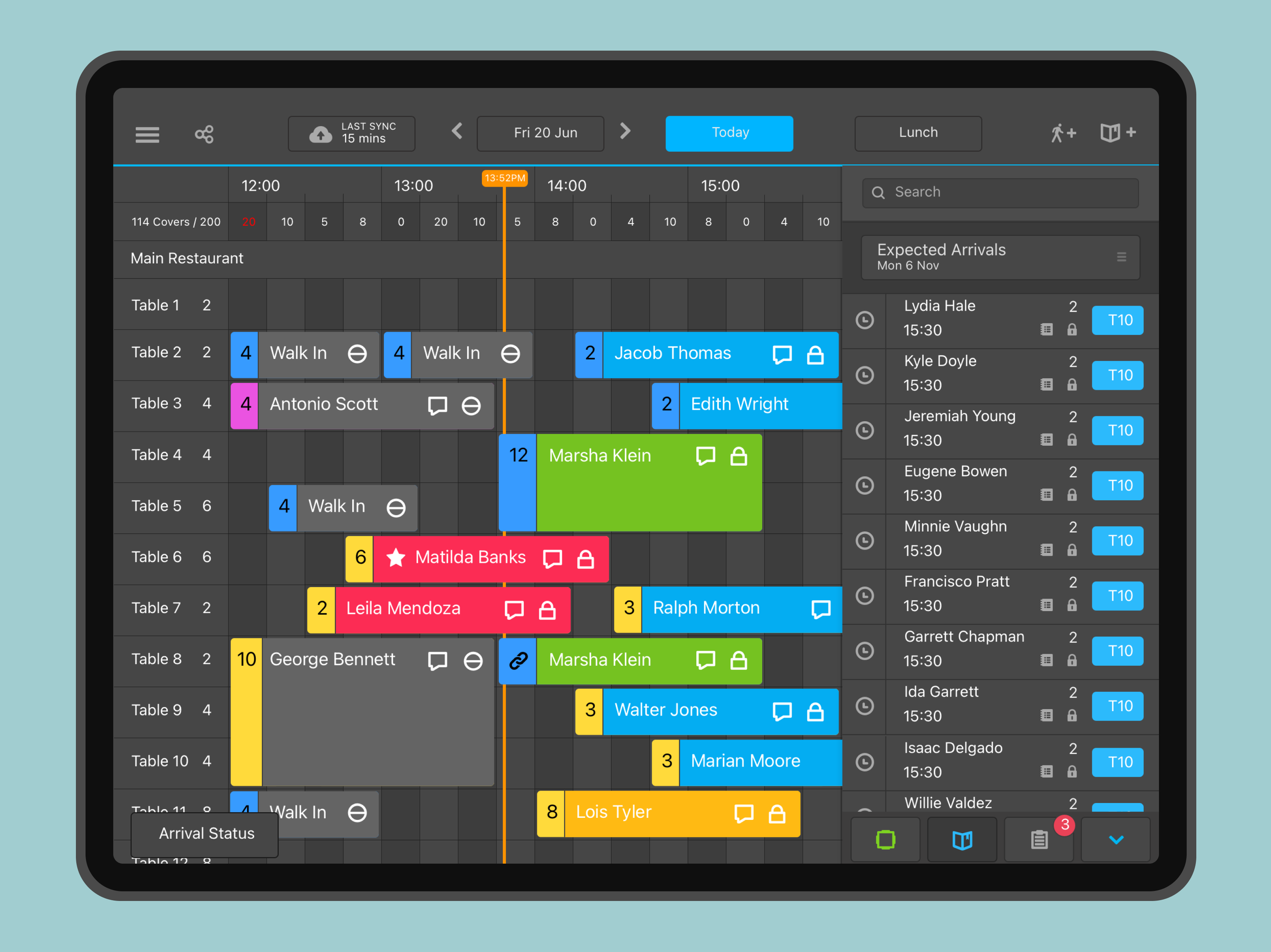 Visibility was critical. Unlike the desktop, users wanted to see the table plan while taking bookings to keep situational awareness.